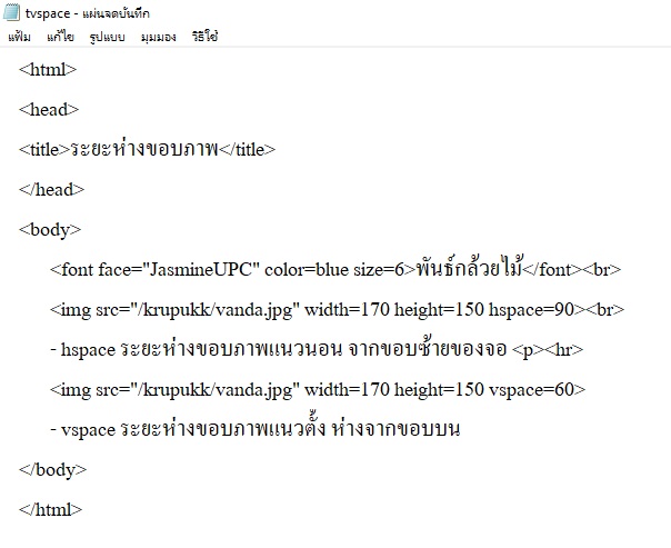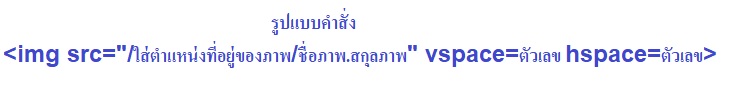 VSPACE=ตัวเลข กำหนดระยะห่าง (ทางแนวตั้ง) ของรูปภาพ ค่าที่กำหนดมีหน่วยเป็น Pixel