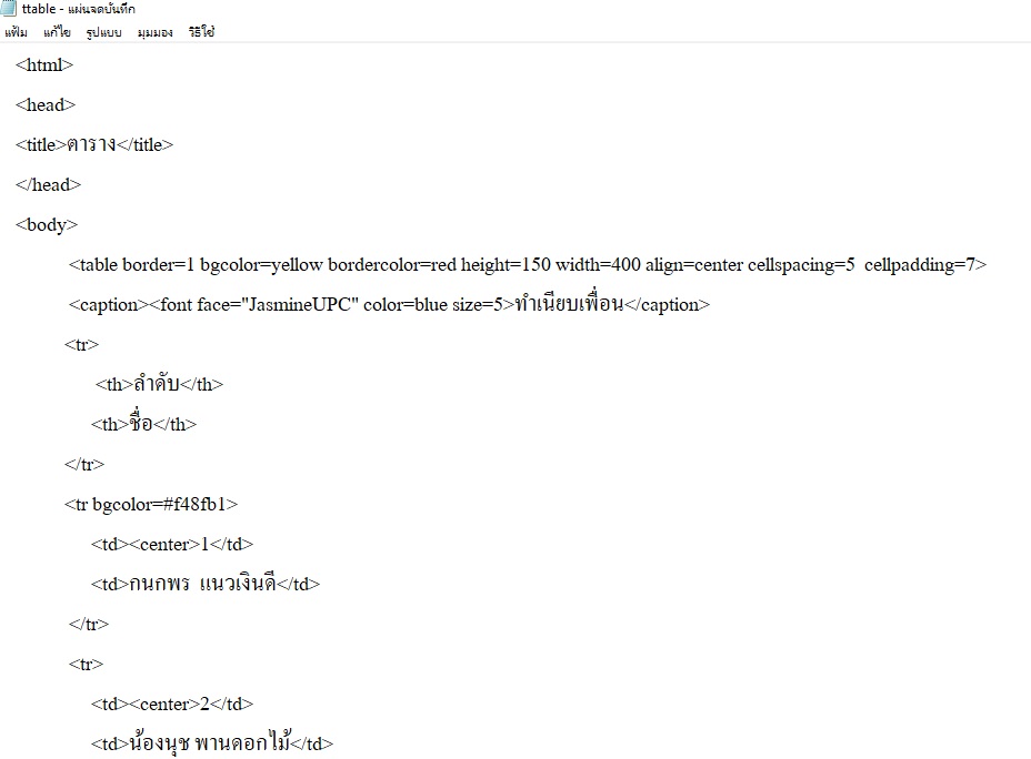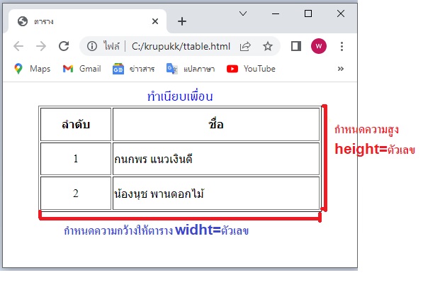 ตัวอย่างการกำหนดระยะห่าง และใส่สี