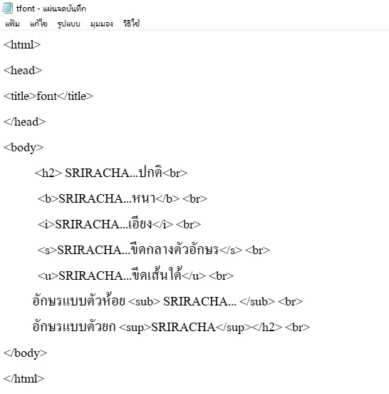 ของแบบตัวอักษร, การกำหนดขนาดตัวอักษร,การใช้อักขระพิเศษ,และการกำหนดสี ซึ่งมีแท็กคำสั่งต่างๆ ดังต่อไปนี้
